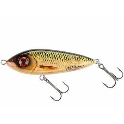 McSnack, the Snack that catches them all. McSnack is an erratic glidebait with loads of belly flash, wandering action with a super tempting wiggle on the drop and it imitates fleeing baitfish perfectly. Work it with a medium stiff castig or spinning rod, with lots of twitches, reel handel jerks and long pauses.