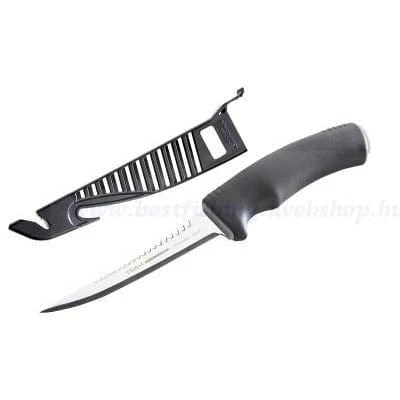 Kompaktan višenamjenski filet nož sa savitljivom oštricom duljine 10cm, i nazubljenom pilom sa druge strane koja služi za guljenje ljuski. Oštrica je napravljena od nehrđajučeg čelika, a ergonomski oblikovana protuklizna ručka savršeno leži u ruci. Zbog plastične navlake nož se brzo suši. Sa ugrađenim brusom.