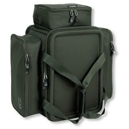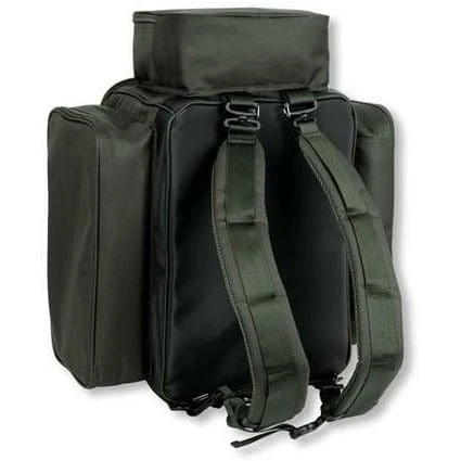 Featuring a recessed hard top or work surface, you will be able to place items securely on top. The PVC inner lining is easy to clean and the PVC base helps to protect against a wet or damp ground. The IS rucksack has three external pockets in a different configuration to the carryall with two long side pockets and a single smaller top pocket. They are made to fit tackle boxes and the small EVA accessory pouches, buzzer bars, etc.
