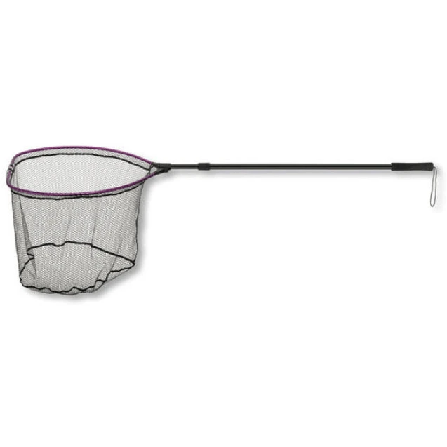 The aluminum telescopic landing net handle is designed very distortion-proof and is made of thicker material than usual to guarantee maximum robustnes. Additionally a 70cm measuring tape is engraved to the net handle. This deep landing net is equipped with a special silicone coating, which is markedly softer and lighter than common “rubber coated” nets. The fish mucosa is protected perfectly, the tangling of hooks is prevented and the weight is reduced significantly. The EVA-handle additionally offers a hand loop to grab the landing net securely.