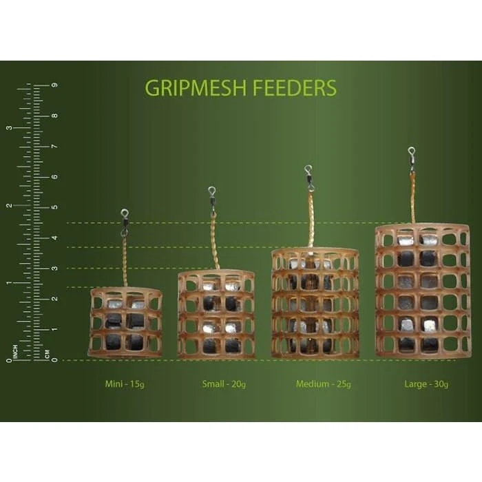 They are equally useful on rivers and stillwaters and can be fished either on a running line, within a fixed loop or locked with Grippa Stops. Gripmesh Feeders are moulded in a tough, durable, nylon polymer with an unobtrusive camo brown tint.