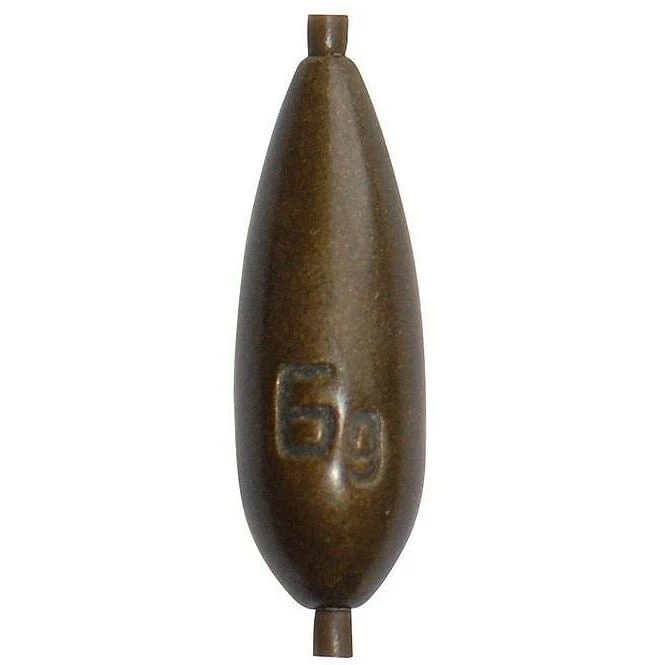 Drennan In-Line Olivettes are available in a very wide range of sizes from 0.2g to 12g. These perfectly streamlined weights are finished in a non-flash, camo bronze rather than the obtrusive, traditional black. The sizes are also clearly engraved on the side for ease of identification. The line is threaded through the centre so they cannot come off, which makes them particularly suitable for snaggy swims or when targeting big fish.