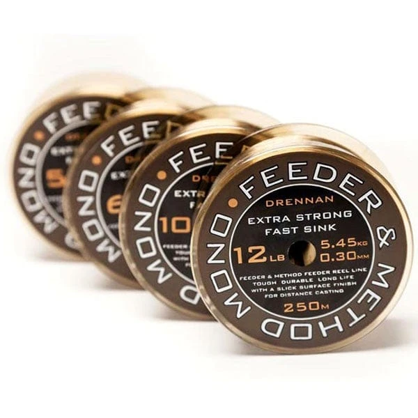 Drennan Feeder & Method Mono is specifically designed for standard feeder work and the Method feeder, this line is fast sinking, tough, durable and has a long life with a slick surface finish for distance casting.