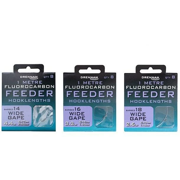 Wide Gape 1 metre fluorocarbon feeder hook lengths are perfect for baits such as worms, sweetcorn, casters and maggots.