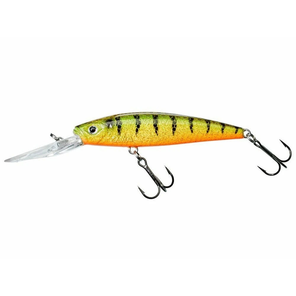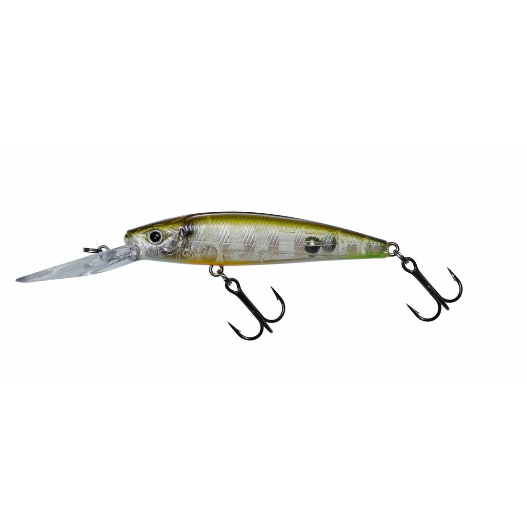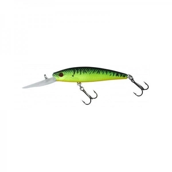 Designed to get down quickly to deeper water, the MOTHRA 75 F is perfect for working along ledges and drop offs. Designed for trying to catch predators where they are stationed rather than getting them chasing a lure. Very attractive because you can impart a wide range of movement to this lure from minimal twitching to violent pulls and jerks. This long bill minnow will attract perch, bass, pike etc… its density can be coupled with fast retrieves to create a frenetic action that works well in flowing water.