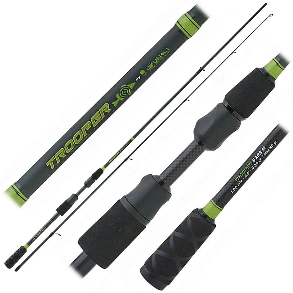 Range of spinning rods covering different lengths and power ratings. Quality fittings yet great value for money featuring cut away reel seats for direct contact with the blank. The action is best described as a versatile fast-regular that lends itself to a range of techniques from soft lures to plugs and hard baits. M1 carbon blanks and SIC rings. Team these rods up with a TROOPER FV 25 reel for a balanced combo that is a joy to fish with!
