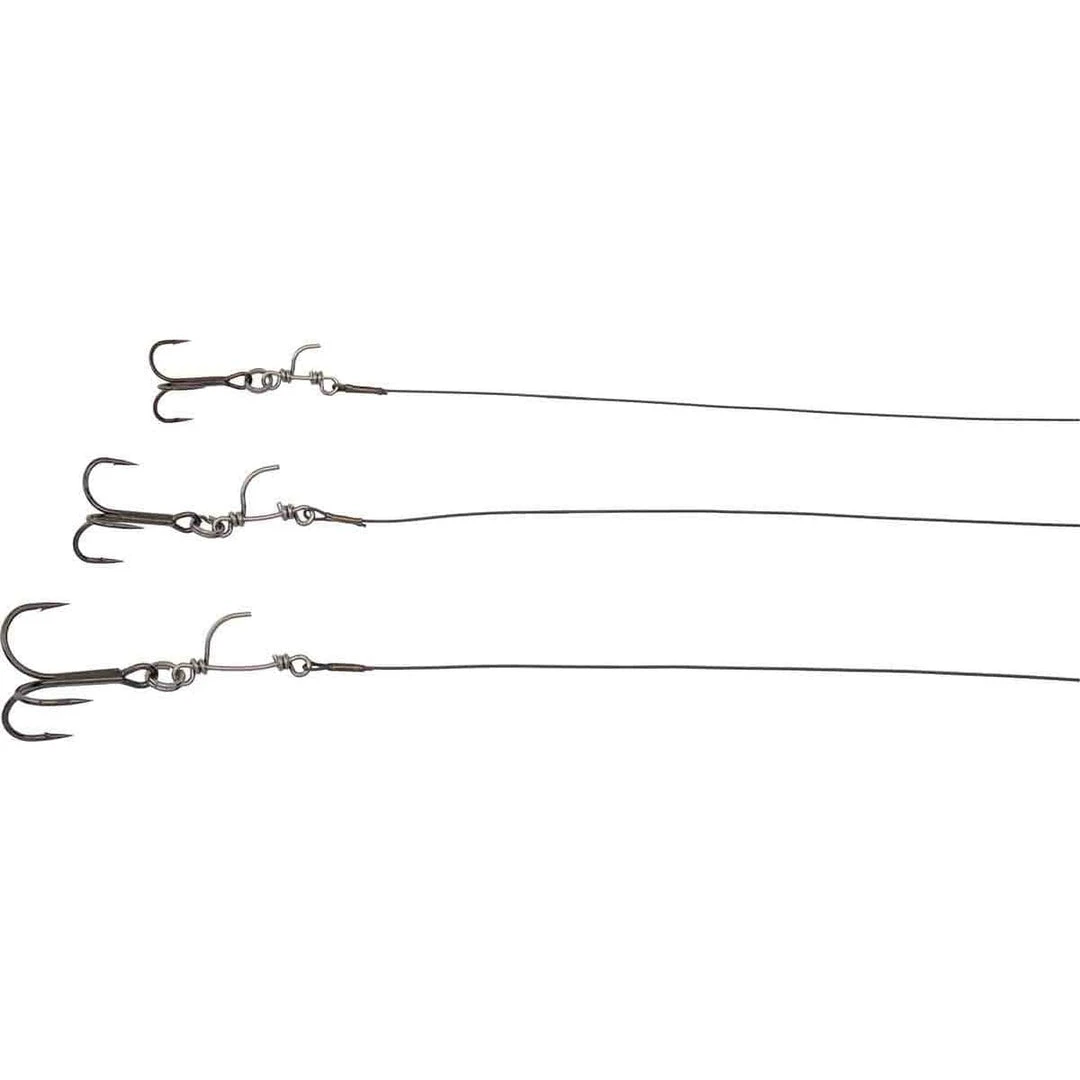 Carbon49 wire trace, mounted with the Line modifier clip and ultra-sharp Savage Gear Y-trebles – perfect for the 4D Line Thru trout.