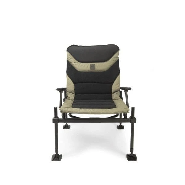 The Korum Accessory Chair has been redesigned to make it lighter, more compact and easier to use. It still features our patented vertical leg design, using 25mm round legs for more stability. The mattress is made from the highest quality durable materials and our new Quick Fold design means you can be fishing quickly within minutes. There are also armrests with padded neoprene, a must for bankside comfort.