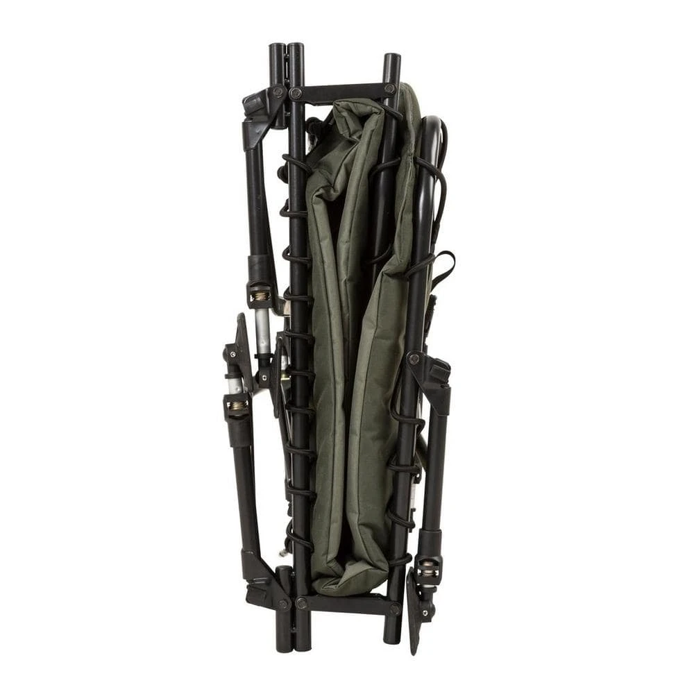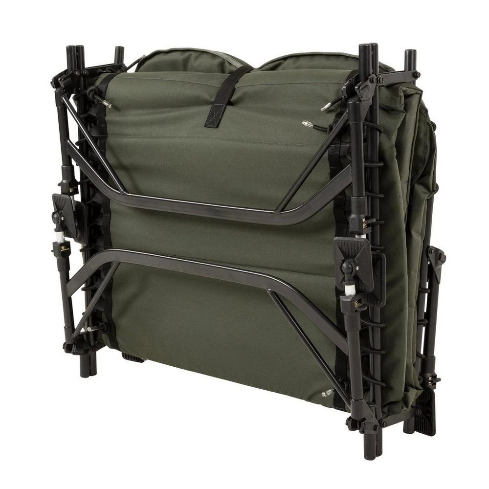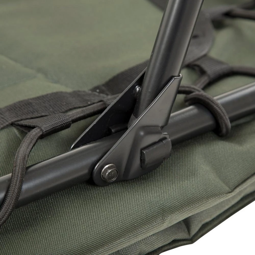 - Double hinge system to create the flatbed option and when folded create a cavity for a sleeping bag to be left attached to the bedchair during transportation