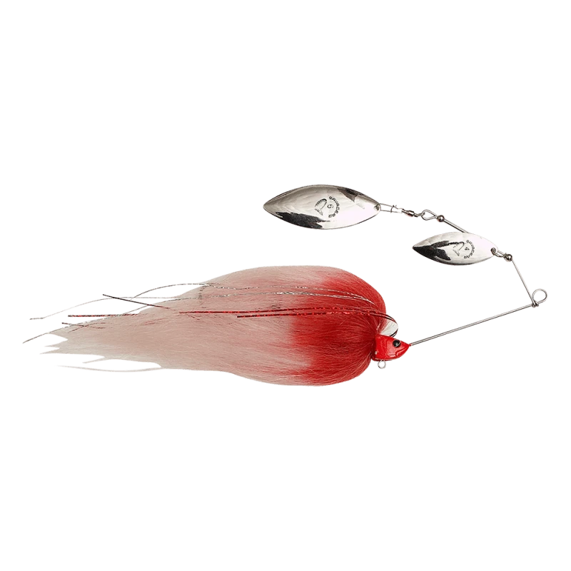 Mega sized spinner bait, with an extra large and long main frame, for superb action and hook up rate. Twist locked fame eye, swinging stingerhook. The head, has an eye under the belly so it is easy to add extra weight to fish at any desired depth. The changeable blade option, between willow and colorado blade, gives 2 quite different action styles and work depths.