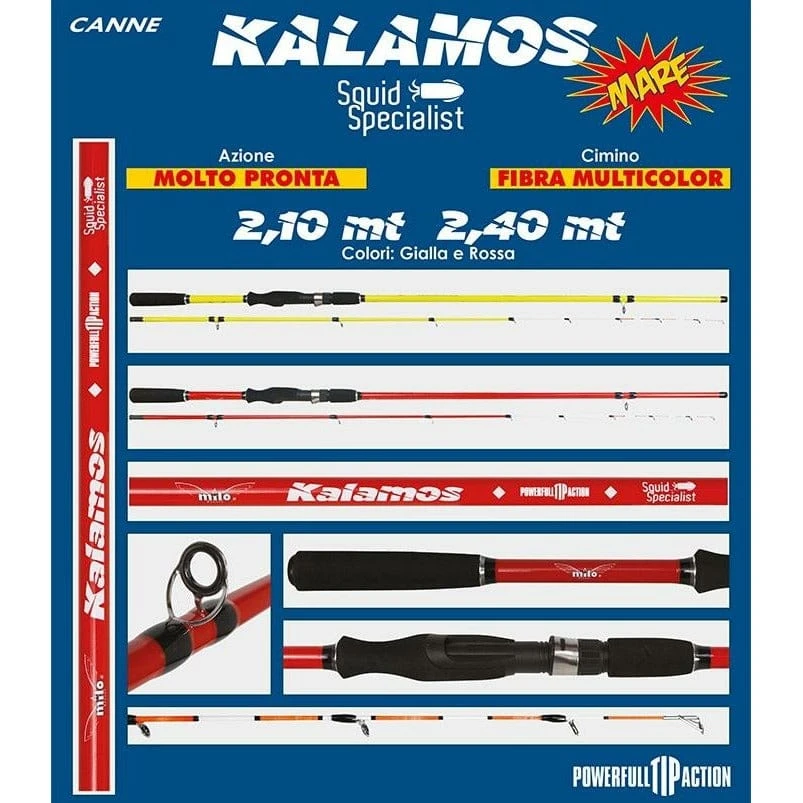 Made from composite carbon, this two-piece rod with push-in joints is specially designed for squid fishing. It features SIC II Guides, double foot on the lower blank and low profile single foot todawrds the tip, a double-grip neoprene handle and a moulded screw reel seat. The Kalamos provides a fast, responsive action and is fitted with a spliced multi-coloured figerglas tip for grater sensitivity.