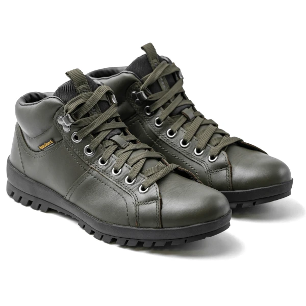 High quality hardwearing waterproof footwear with a high ankle giving you that extra level of protection. With a solid moulded one piece sole double stitched to the leather upper. Available in a choice of both brown, or green colour schemes. They feature a polyurethane membrane which allows water vapour out, but stops any rainwater getting in. Keeping your feet dry and comfortable in all conditions.