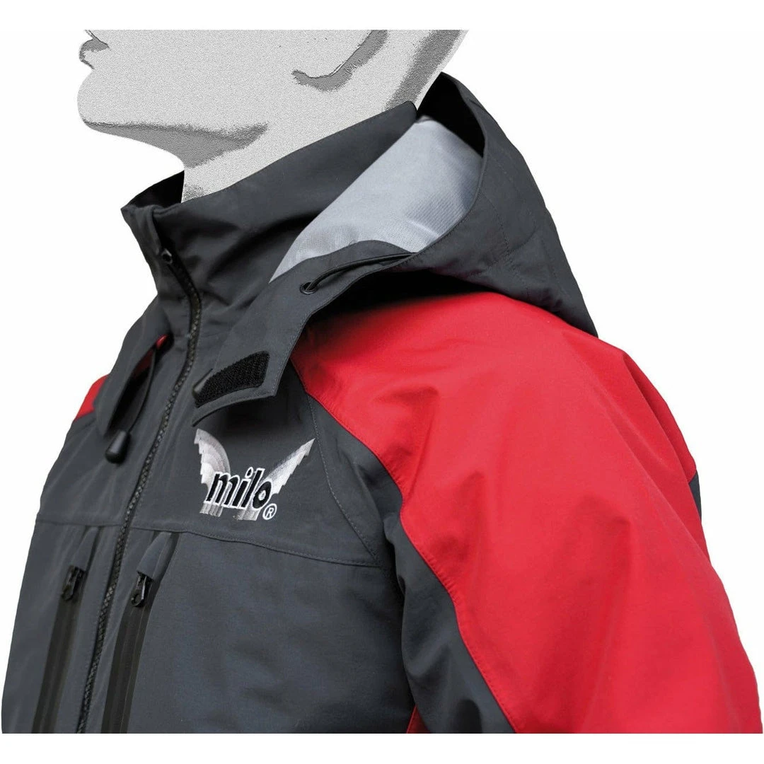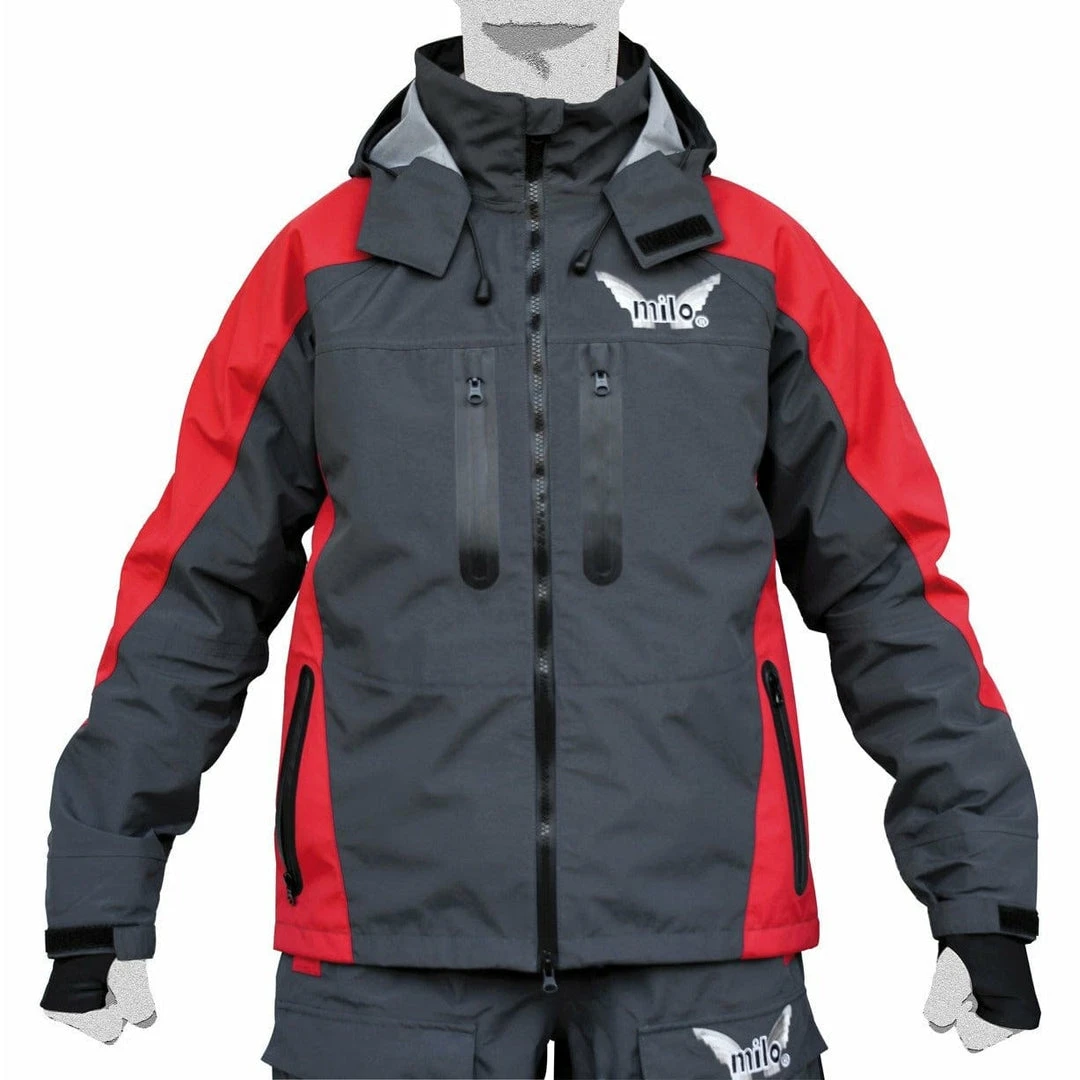 Made from highly waterproof nylon material with 10.000mm water column, this exceptional jacket is the ultimate in technical sports clothing. The hood with peak and drawstring flods away into the Velcro-fastened collar. The jacket opens in the front via a full-length two-way zipper. Features include an internal drawstring at waist, four front pockets with rainproof heat-sealed zippers, and adjustable Velcro straps at cuffs. The extendable cuffs have a thumb opening to allow maximum ease of movement, while protecting the palm and back of your hand. The interior features a polyester membrane with heat-sealed seams and three zippered pockets, including one with mesh window.