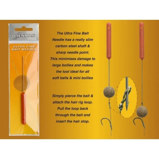 The Drennan Ultra Fine Bait Needle has a really slim carbon steel shaft and sharp needle point. This minimises damage to large boilies and makes the tool ideal for all soft baits and mini boilies.