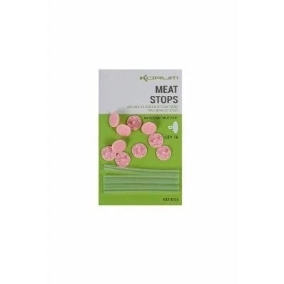 The Korum Meat Stop system has been designed to improve the durability of meat hookbaits, providing a specially designed bait stopper with a number of unique characteristics. Firstly, the large flat surface stops softer meats from being pulled off the hair by small fish – it also provides an impact shield when casting or retrieving quickly.