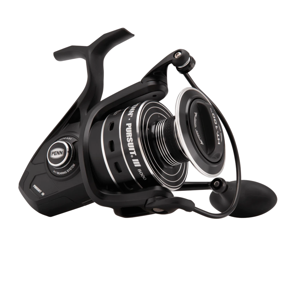 The PENN Pursuit III features a durable construction and the smooth gear system anglers expect from PENN. This reel features an ultra lightweight, corrosion-resistant graphite body and powerful HT-100 drag system making the Pursuit III a great value for the money for saltwater anglers. Available in six sizes from 2500 to 8000, the Pursuit III has a reel for most fisheries. The Instant Anti-Reverse eliminates even the slightest rotor back play for instant hook-ups every time, while the 4 shielded stainless steel ball bearings provide smooth retrieves.