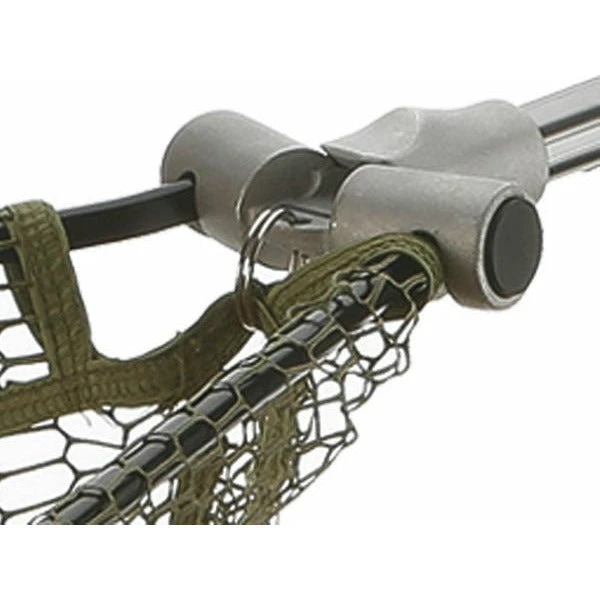 Strong foldable landing net with one-piece massive aluminum hinge and “gun smoke” anodized landing net handle, which can’t twist during sliding. The length can be adjusted with the help of quick lock fasteners made of metal.
