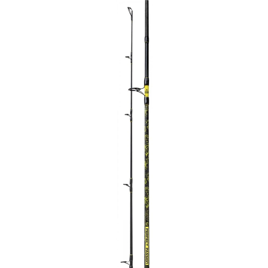 The Perfect Passion Spin 2.7 m is an all-round rod for bank anglers. The casting weight of 60-200 grams allows you to use a broad spectrum of lures and achieve long casting distances even with heavy spoons. Even when jigging near the bottom with larger soft lures, the rapid blank is completely at home and ensures optimal transfer of the lure action even in strong currents and deeper waters. The heart of every Perfect Passion is the rod blank made of 100% IM6 carbon fibre matting. It is combined with the new ‘C.G. Grip System’ – an especially comfortable grip consisting of a mixture of two different plastic components which ensure a secure and non-slip grip during long fights, even with wet hands!