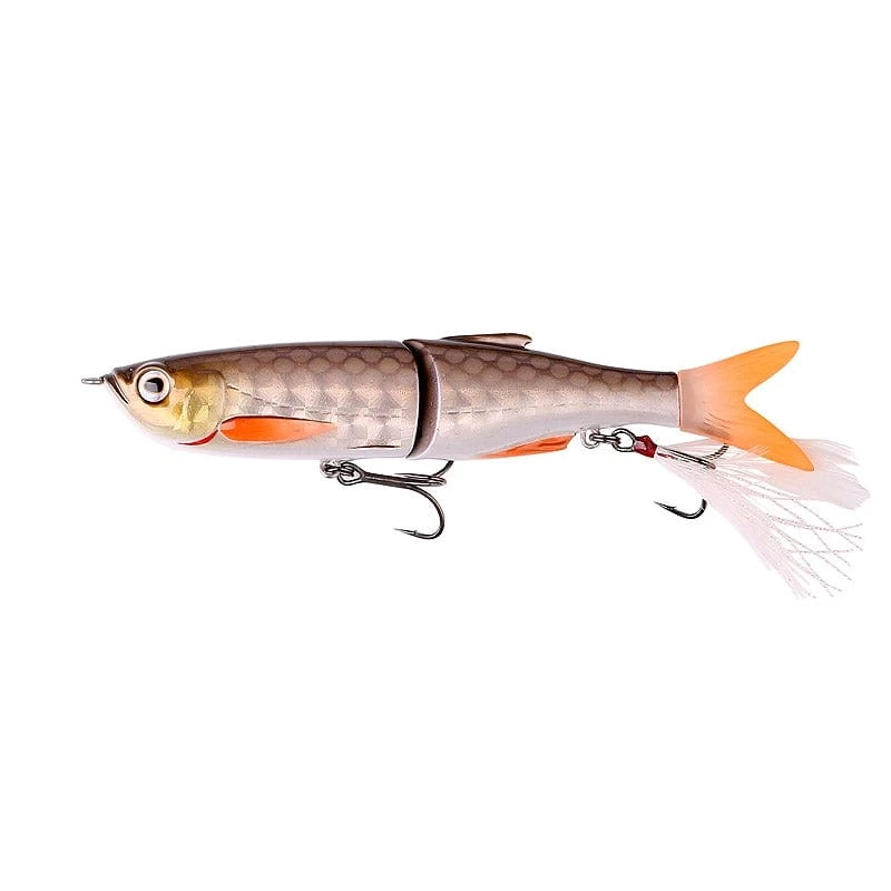 Based on a 3D Scan of a Bleak – one of the most important prey fish for many European freshwater predator fish. The Restricted V-joint in combination with the unique Body shape give the most enticing Glide swimming action! Big side to side swim on steady retrieve, superb side flash action on jerks!