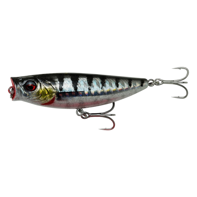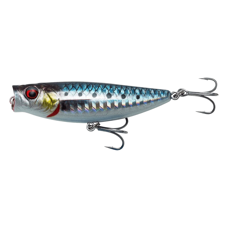 Based on a 3D Scan odf a baby sardine. The lure is not a popper, it is not a walker, it is both! The perfect “Hybrid” of a popping and a walk the dog lure. The Pop walker can perform a perfect WTD action or it can pop if the angler simply pulls It with the rod tip down! With the rod tip a bit higher, the Pop Walker “walks” with popping and splashing action.