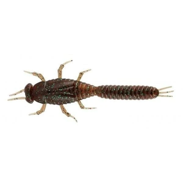 Finally fished on a micro head it looks like a small beetle larvae or caterpillar –great bounced along the flow seeking out fish feeding on small insects on the riverbed. Lends itself to any light rig style- weightless, drop shot, split shot, micro jig or light Texas…