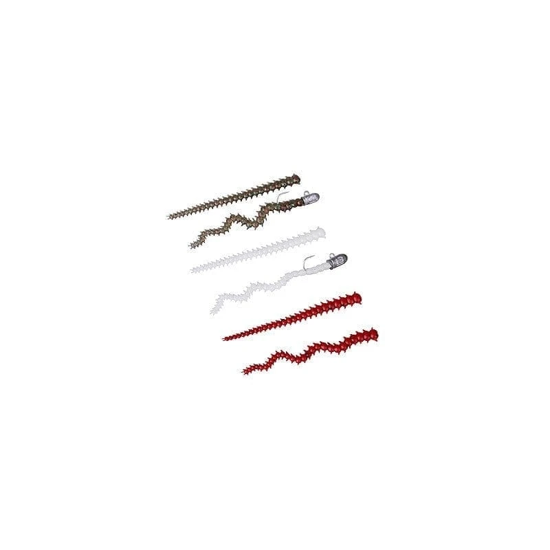 3 brilliant colors, 8 pcs each and 2 micro jig heads, 2 models of worms – one straight and one curved – giving you the choice and perfect presentation for your favorite LRF species! Scented!