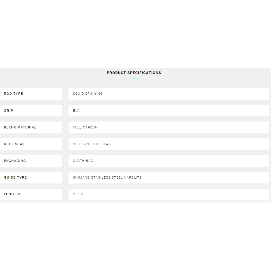 The new VENGEANCE EGING rod is developed specifically for Mediterranean style squid fishing. The fast-recovery progressive action of the blank allows to maximize the casting distance and to correctly twitch your Shimano Egi lure. Also, it allows to maintain the constant line tension needed to correctly land the squid or cuttlefish. The aggressive black & white design coupled with ergonomic EVA grips will not remain unnoticed on the shore.