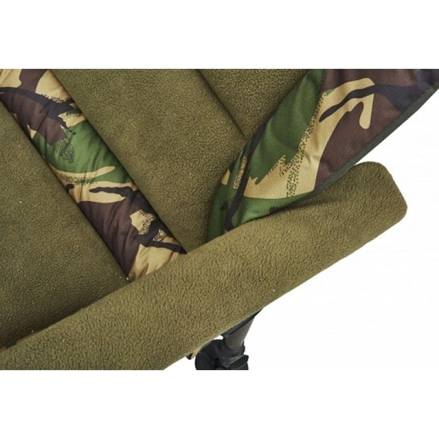 An extremely comfortable chair with arm rests and adjustable legs. Well padded masttress with a fashionable dual Camo and Khaki material finish. Very light weight but strong aluminum frame rated at 115kg.