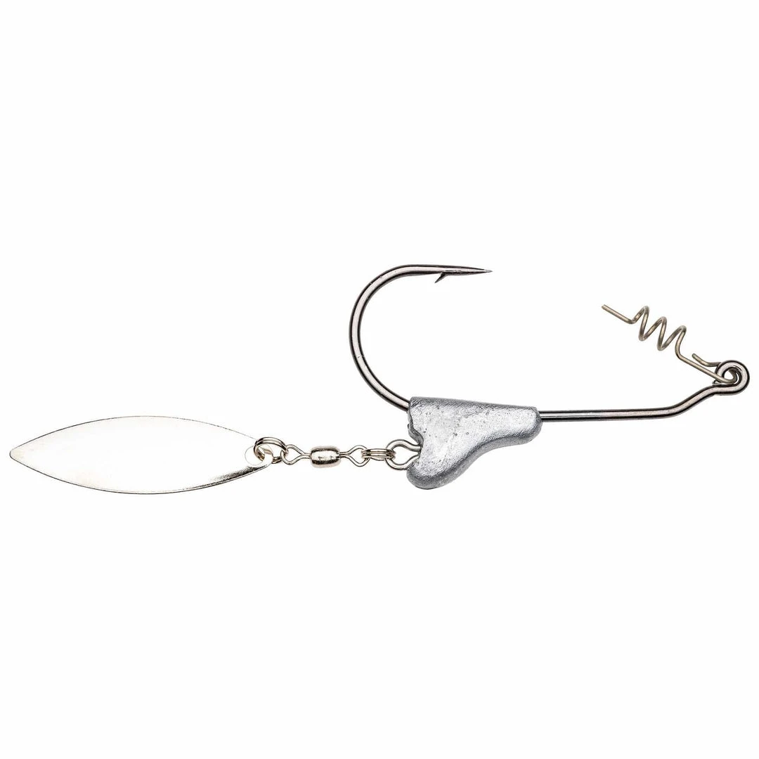 Jazz up your favorite soft swimbait by pairing it with a Strike King® Tour Grade Belly Blade Jig Head. This pro-designed system is not your typical underspin setup at all, as the jig head itself is actually a weighted keel that rides ahead of a Strike King Raz-R-Blade willow blade, connected via a ball-bearing swivel.