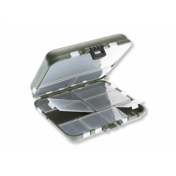 For hooks, swivels, beads etc. With 10 separately closeable compartments and 2 adjustable compartments, which can be divided into 10 variable compartments.