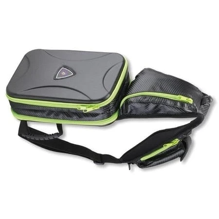 The hard cover with woven-carbon fiber design offers perfect protection from damages. The wide, padded shoulder strap ensures an optimal carrying comfort even with heavy load. The Roving shoulder bag is designed in a way that guarantees unimpeded movements during fishing – when tackle is needed, the bag can be swung around and single compartments can be opened easily without the necessity of laying down the bag.