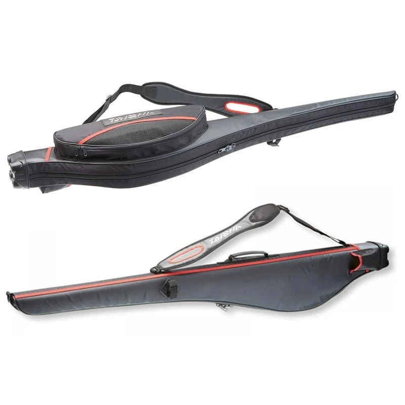 Premium semi-hard holdall made of water-repellent material in carbon fiber design for the save transport of a mounted rod.