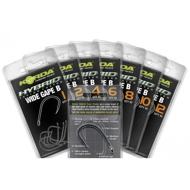 Hybrid Wide Gape Barbless is heavier in the gauge with an excessively sharp beaked point making it more secure than most barbless carp hooks, all the features combine to make a hook which turns more bites into runs and more runs into fish in the net.