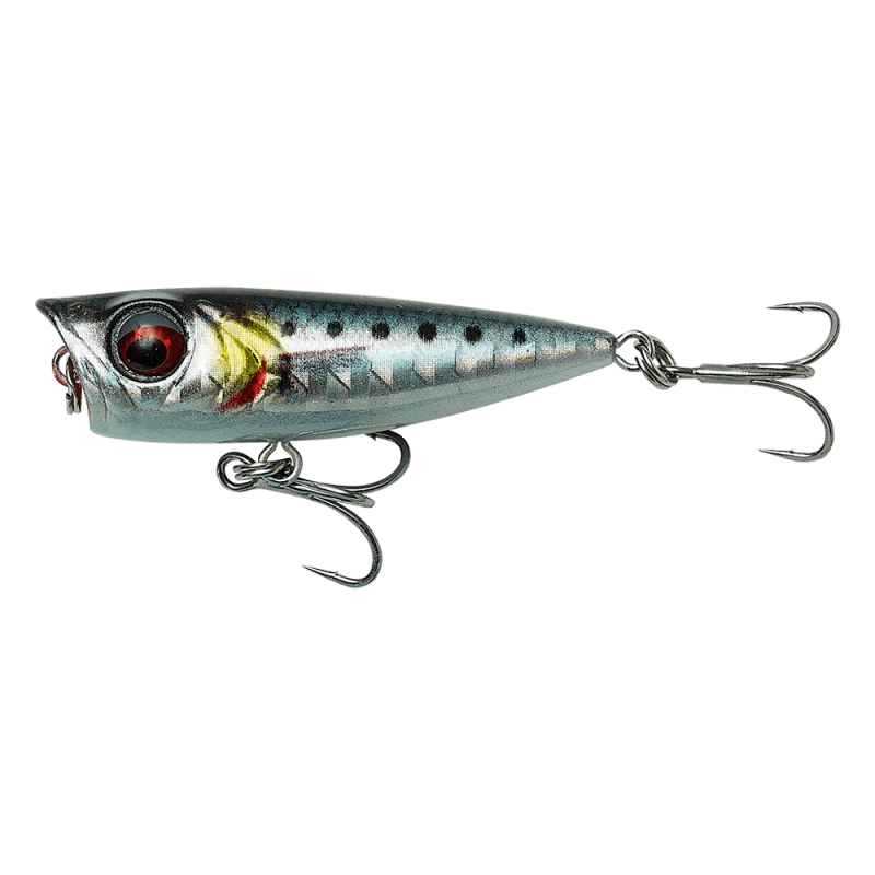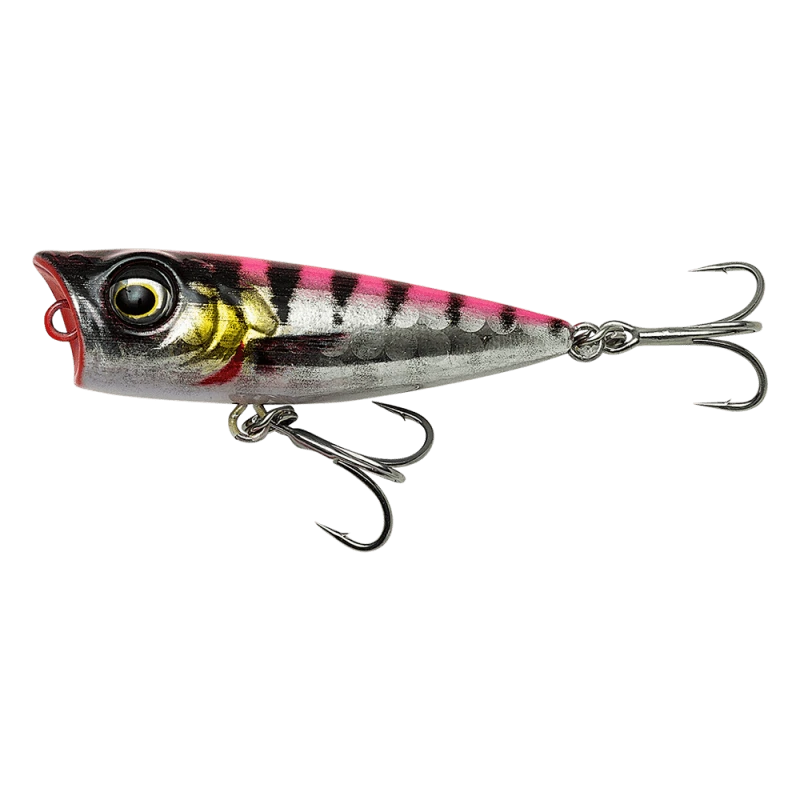 This micro popper has the most amazing popping action and despite the very light weight the lure cast very well. The lure attracts attention from just about all smaller sized predator fish and is very versatile. Perfect for Aji, mackerel, saddled bream, needlefish, small leer fish and other predators, this lure is an excellent choice for top water micro game!